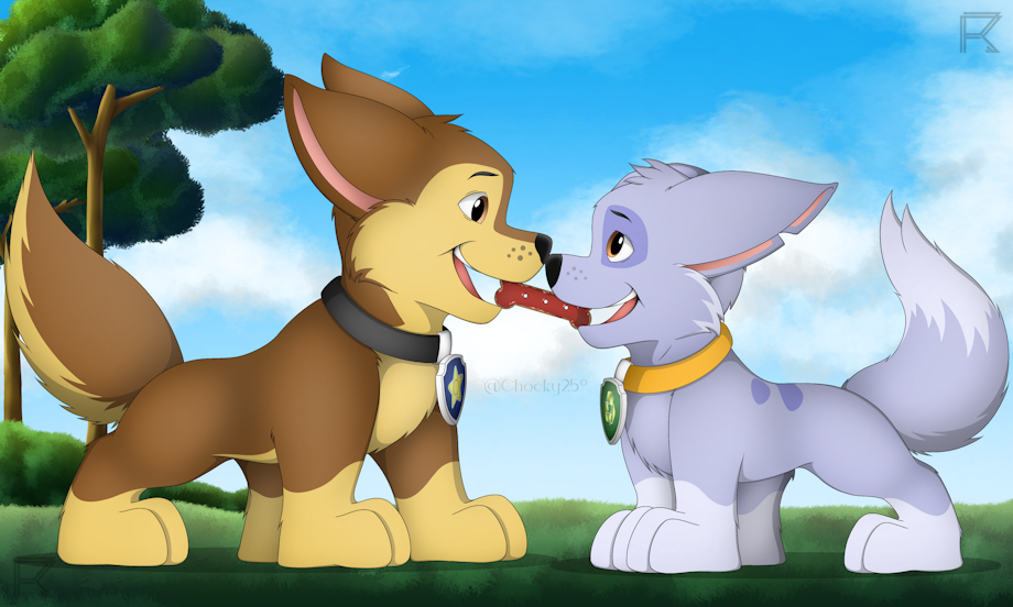 Yeah Chase and Rocky are in Rocky's pup house. Well you know cause they are... Hehe