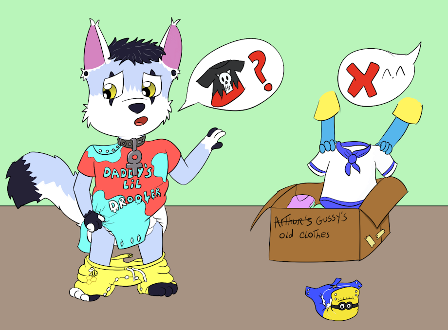 . These hand-me-down clothes he got from Gus might not be as cool as he wanted, but he'll look quite comfortable and cute for his school years =)