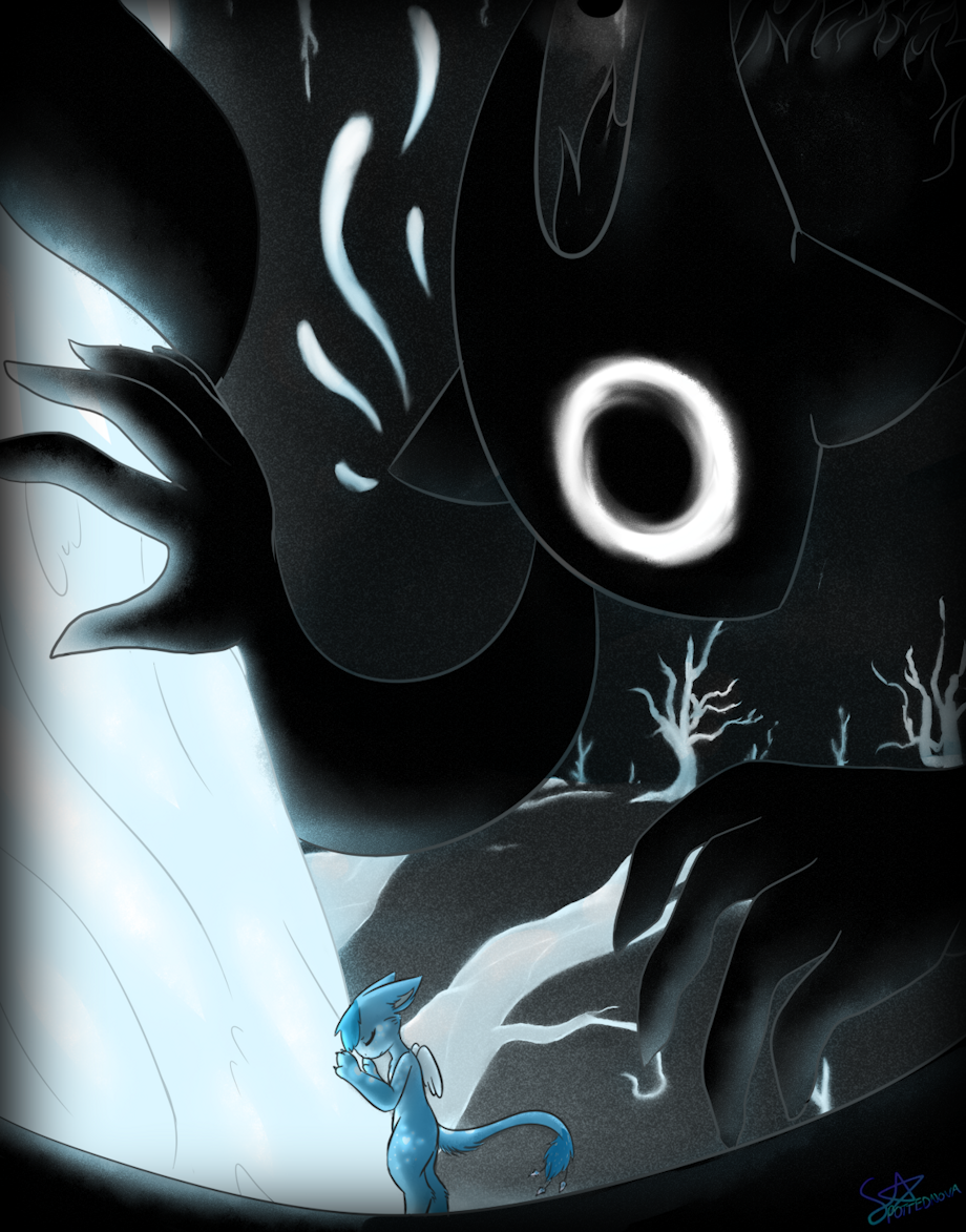 ----------------- The sixth and final entry for a prompt for the Eclipse event that went on with Grems back last month. This one and the previous one basically are meant to be seen as having occurred simultaneously, with Carver and Stardrop having been split up amongst the remaining gods after helping Lapsus. Hopefully that's obvious enough, haha. Fun fact: Stardrop had to be the one to meet Echo if I was going to stay pacifist this whole time because Carver absolutely would have gone on the offensive if the Shadowbeasts surrounded him lmao