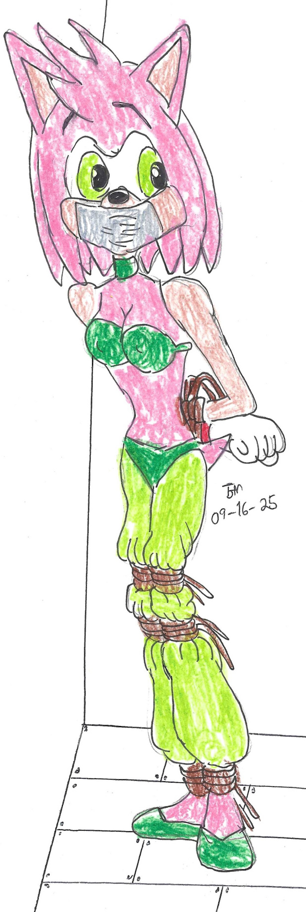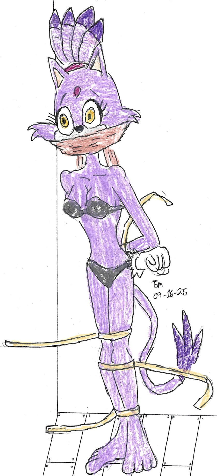 We have Blaze the Cat of Sonic the Hedgehog franchise being in a bikini bound and gagged with zip ties.