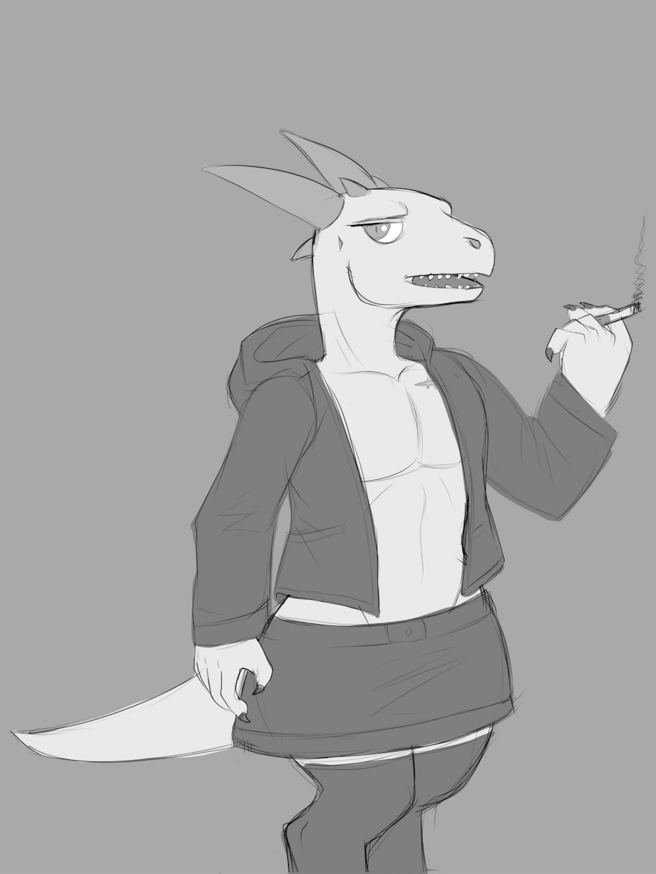 A sketch I commissioned of Tori, my overworked kobold girl.