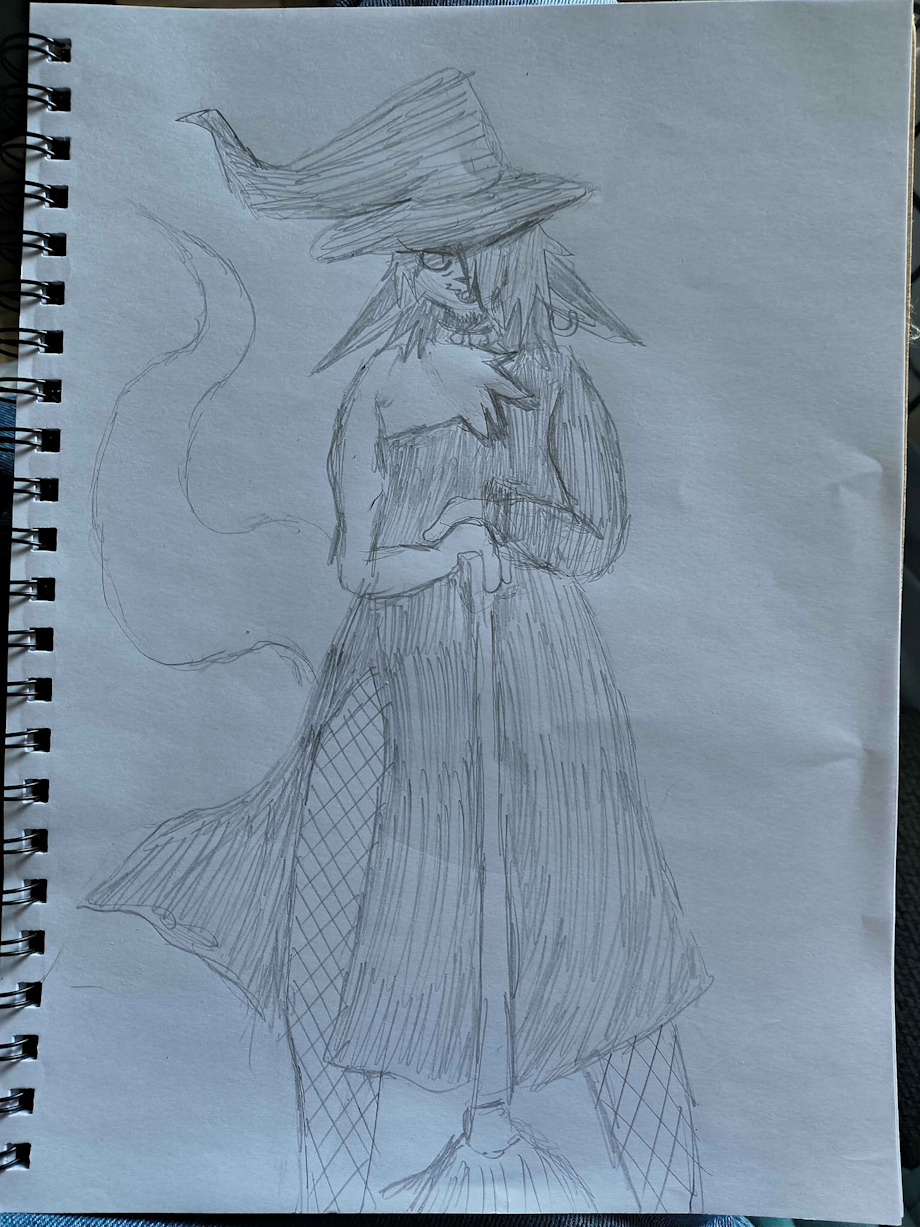 Spoopy month sketch of my fursona in drag dressed as a witch.