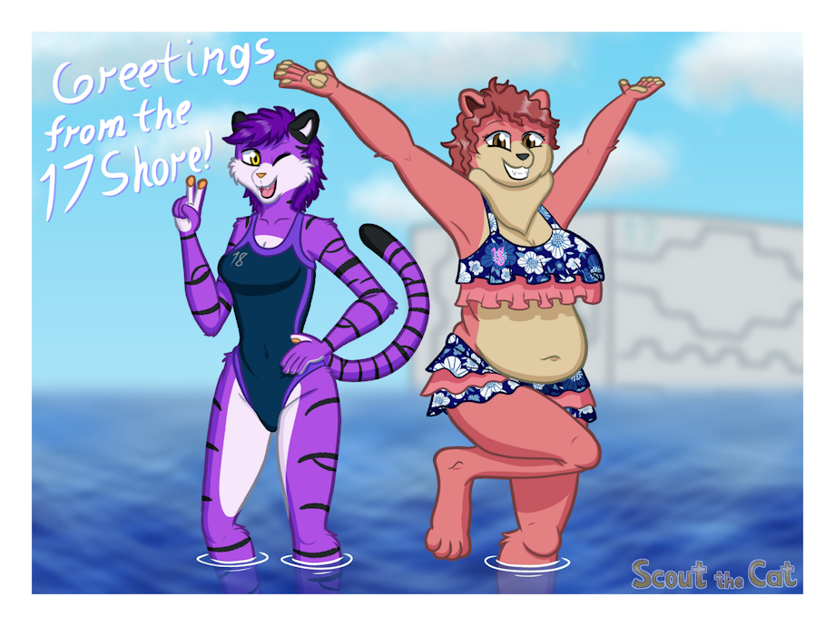 Crystal and Garcella are usually just work friends, but this summer they decided to go to the 17 Shore! One of the more popular coastlines (The Equatorial Beach is the most popular), this beach sits outside of North Sector 17, a sector that is half-bordered by land, half by water. And more importantly, unlike other sectors, they're sympathetic to the landlocked nature of North Sector 18. (Mostly because tourism and profits) Anyway, it's that time of year, the about three weeks where it's actually warm enough to go outside without a thermal suit, so here they are! (They are still required to have swimwear that fits their sector and class, hence the color design)
