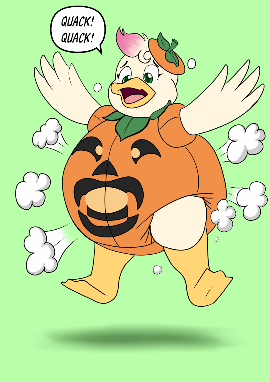It's spooky time yet again. Seems someone thinks I need a costume for the season. Hopefully the diaper will last a while. Good thing I'm used to waddling about.