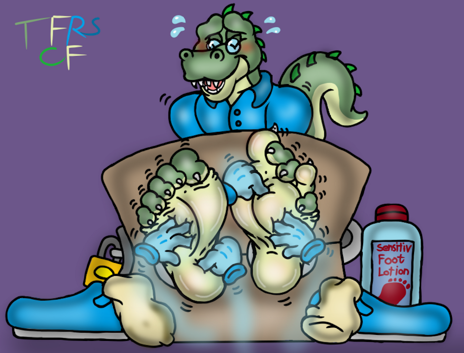 Featuring his Dorky croc dude Sebastion trapped within stocks and getting his Big Ol Stompers tickled by some Ghostly hands heh^^.