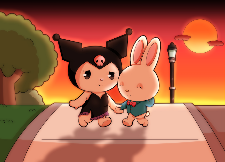 With the evening still at its infancy, Kuromi and Rhythm were now out taking a stroll together towards the direction of the movie theater while holding hands and enjoying each other’s company.