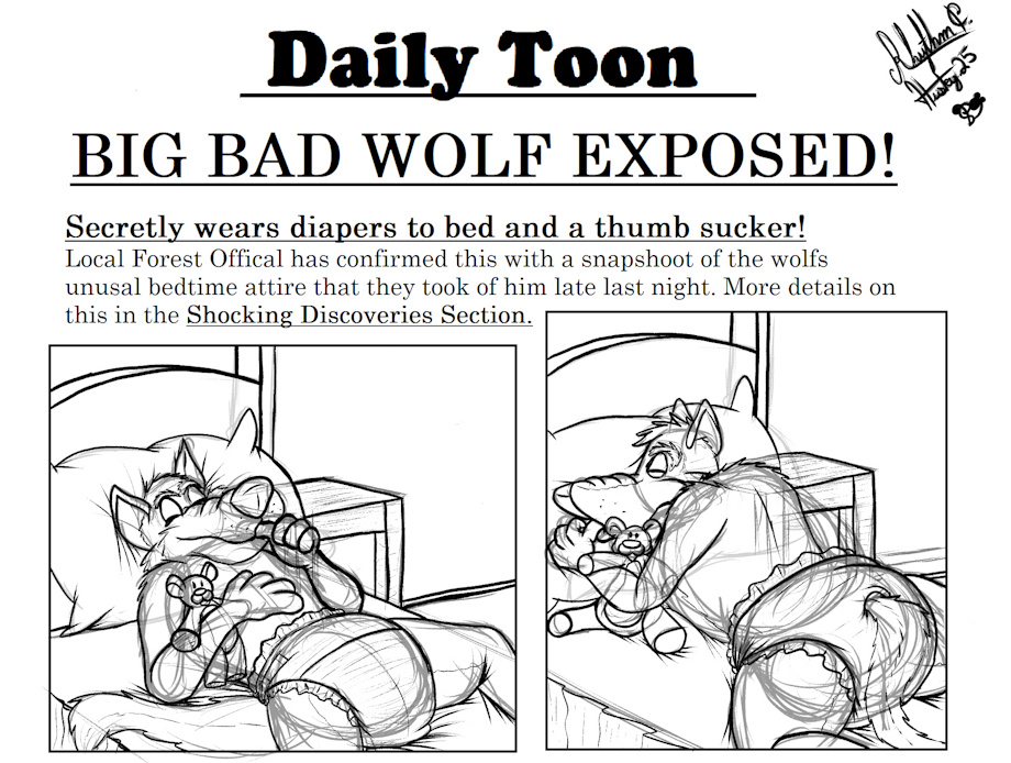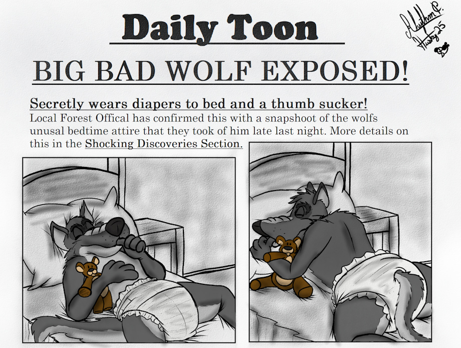 EXTRA EXTRA! read all about it!, The Big Bad Wolf wears diapers to bed and sucks his thumb!