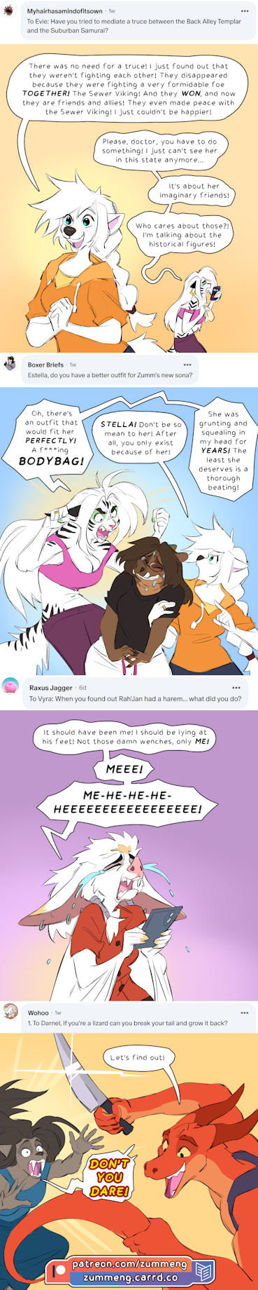 Here are the answers for the last Patreon Q&A, where my patrons could ask questions from Estella, Evie, or others from my comics :)