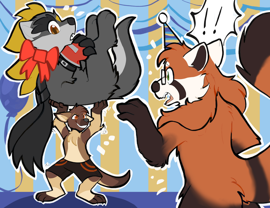So... Rdyjin didn't tell me it was his birthday until the day of. I responded by showering him with gift art. Like this, based on a joke that I got him a puppy for his birthday!