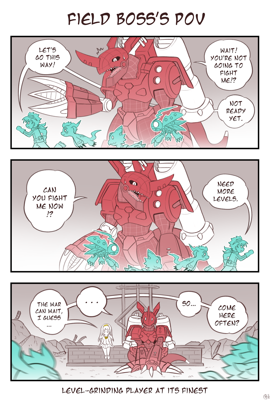 Yeaaaah, I saw the Ultra-Level Digimon stomping around the area while I had a level 2 Gommamon and had to stop and ask 'Am I really supposed to try and take this guy yet?', and I saved game and jumped him and was instantly vaporized. XD