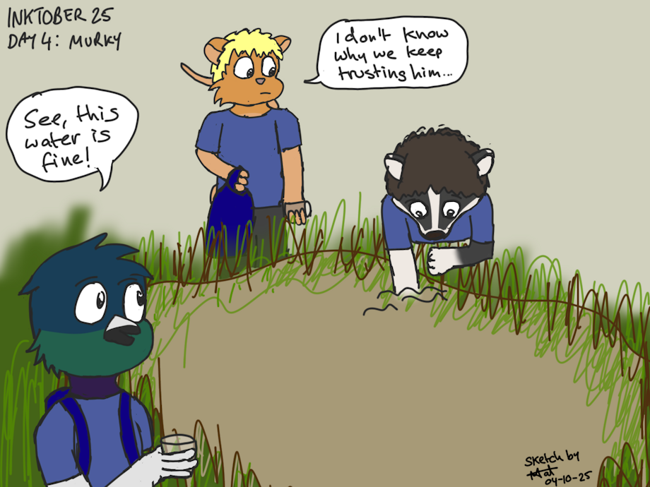With a switch from the 'Lolitober' prompt list to the main 'Inktober' one, we once again find ourselves in the company of these three intrepid (aka, lost) explorers.