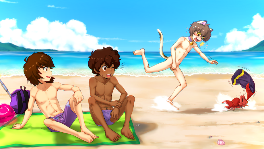 Also poor cat boy getting his swimsuit snatched by that pesky crab, Lol.