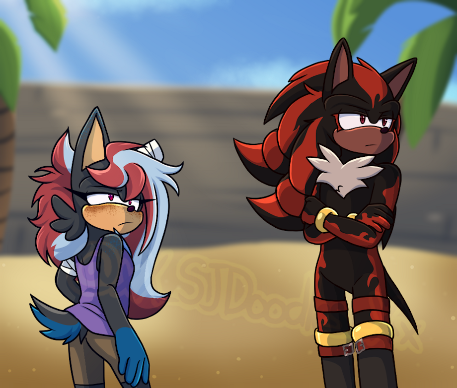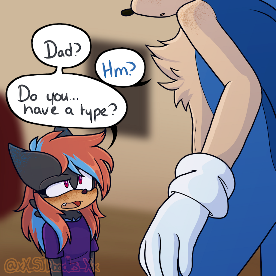 Shadow isn't related to SJ biologically, but he is SJ's stepfather. Sonic absolutely has a type (his ex is Lancelot who is a separate character completely), Shadow has met SJ's other father, Lance. During the events of RTK, SJ and Shadow will butt heads occasionally but they do show their care for one another in their own ways.