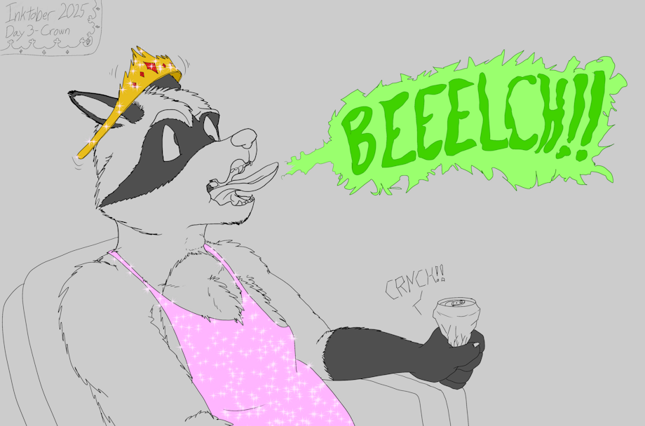 This one is just me as my 'sona being my trashy, disgusting self in a kind of running in-joke amongst the poor saps whom I dump out my social battery for when I join them in some far too infrequent voice chats.
