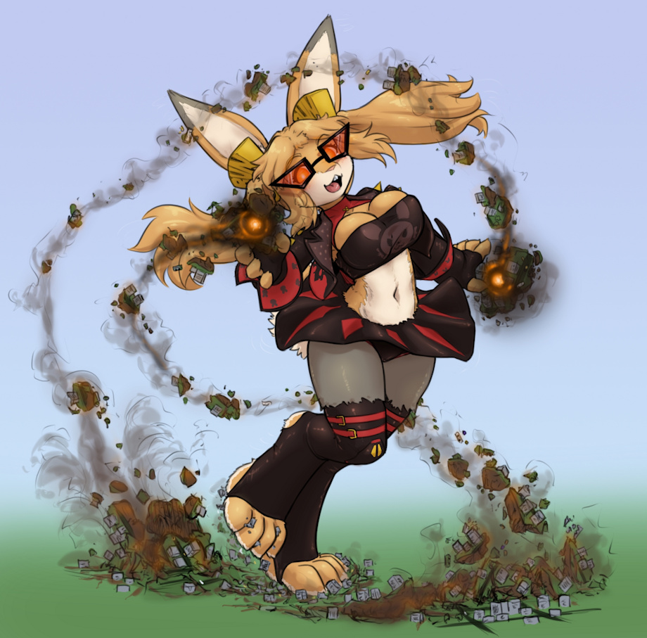 This looks great! Chrome is a very powerful bunny! I wonder what else she uses her gravity powers for, besides when she wants to dress up and play as Burnice! She looks really cute with those sunglasses too.