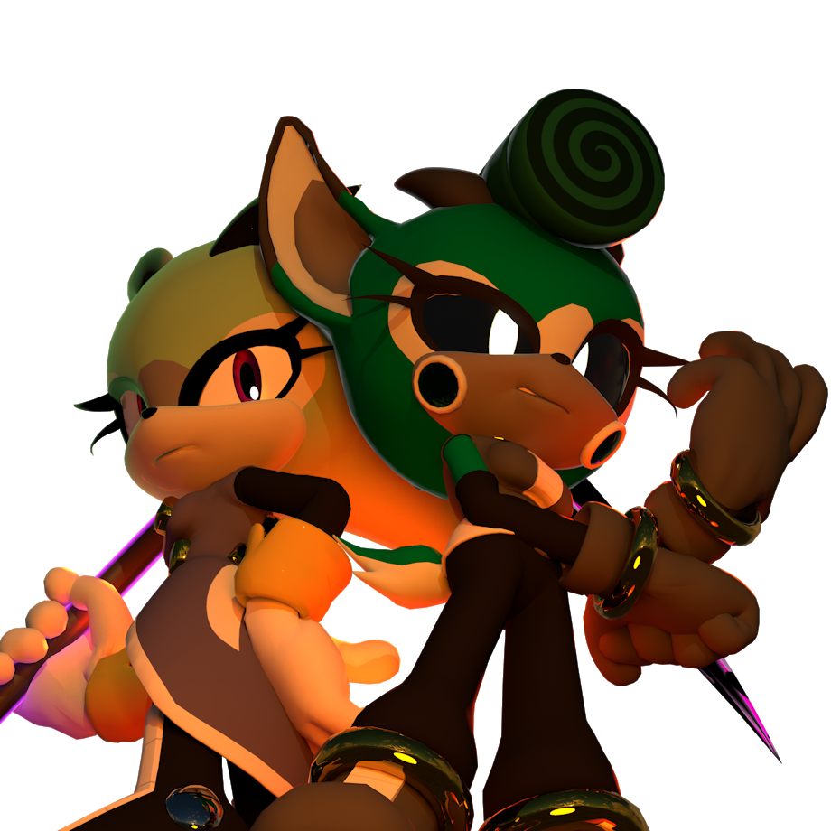 Welcome to the End Of Line! This is a mockup of cover art for my fan game's design doc. The template says it should demonstrate what the game is like, so I went for "action vibes." Nothing is final! Big thanks to @Darkhedghog23 for the Cassia and Clove models and Drakkon for the rigs!