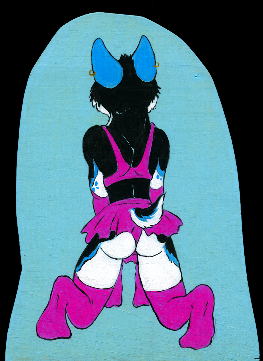 A commission of my corgi character Candy painted on a wood block by the talented BushyCat.
