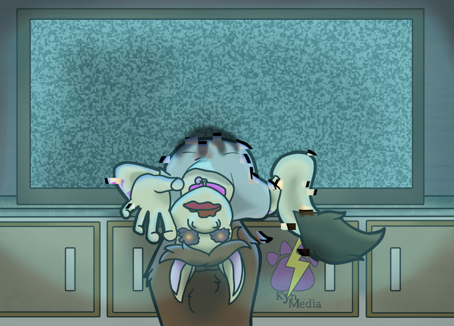 Amber's voice cackles and reverbs unnaturally as her body is dragged through the TV, legs first. Her screams of terror are weirdly broken up, and as her hips slide past the screen, parts of her body begin to fizzle around, glitching in a few places. Her eyes turn black with a subtle goldish glow in the center, and her voice starts to fade away. Amber struggles, but being both upside down, nearly mute, and now blind, she could only do so much as the little zebra is pulled in.