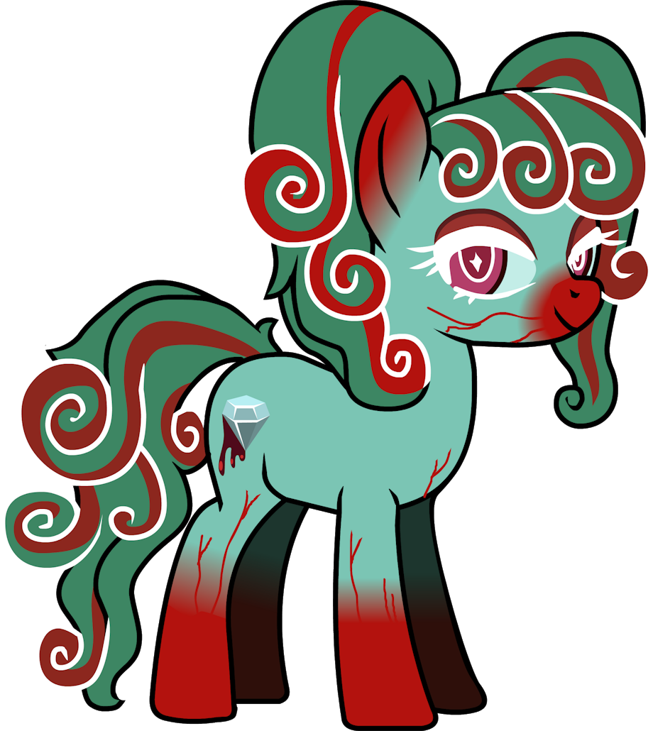 On one hoof she's freakin' beautiful despite her look of trepidation. On the other hoof I'm in awe of the stark, bloody theme of her bloody-themed colors and cutie mark, plus the severity of the veins. Such a gorgeous form with all that perky roundness and pretty white curls (like MLP clouds), yet so damaged and dangerous. Even the floating rock she's on says precarity. And her intense stare and frown are a stronger warning than anything else. Beautifully evocative and just plain beautiful.