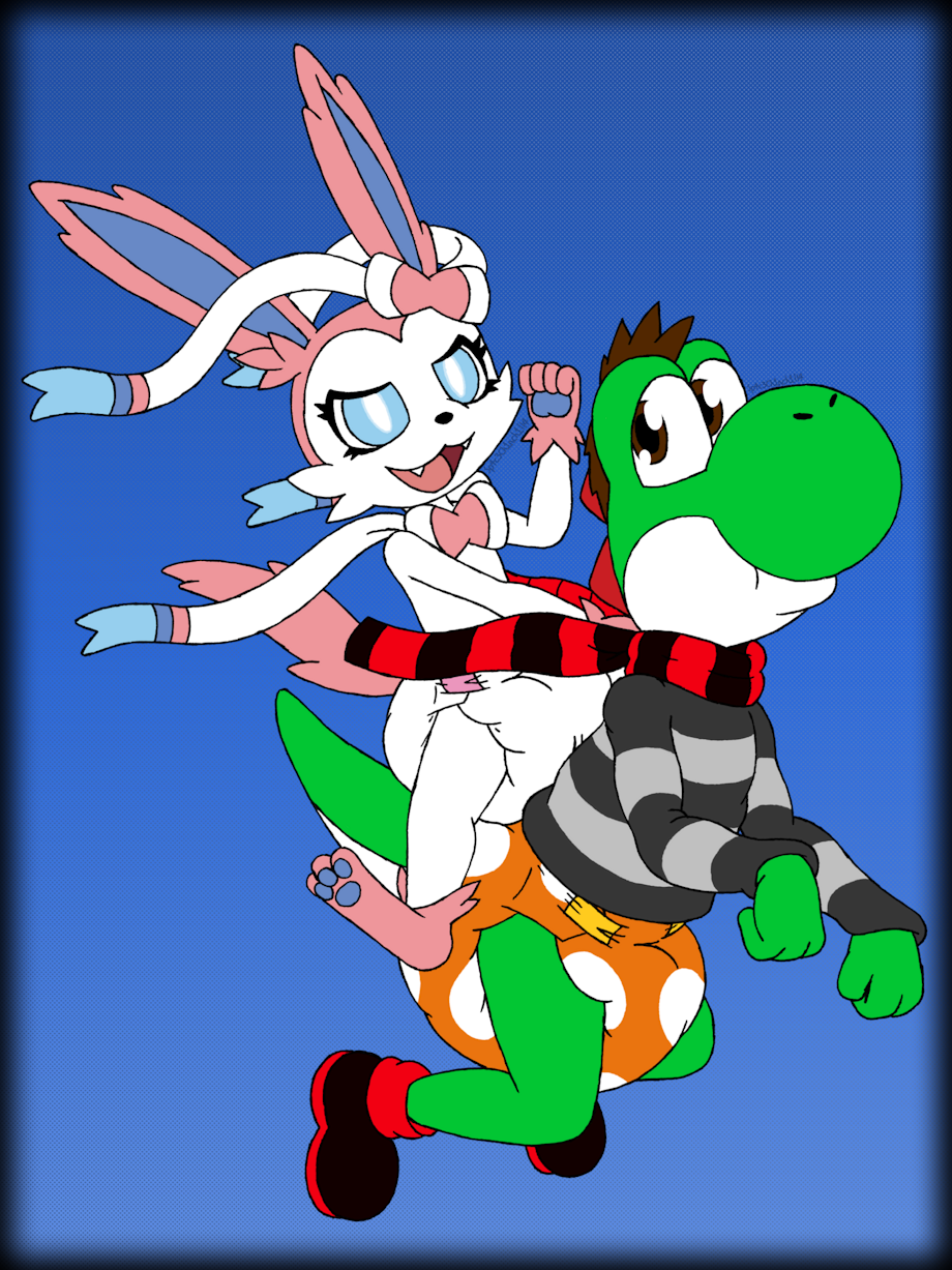 Art drawn by me Sp4c3 belongs to me Keishi the Yoshi belongs to A-Phantasm Sylveon is from Pokemon, which is (C) Nintendo and Gamefreak Yoshi is from the Super Mario Bros series, which is (C) Nintendo