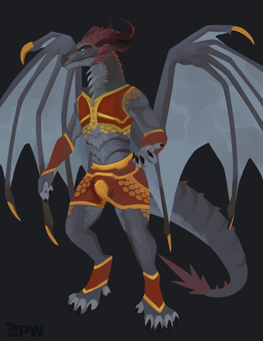 Somewhat of a sketchy painting of my Evoker Dracthyr character "Wymtorrn" in WoW :3