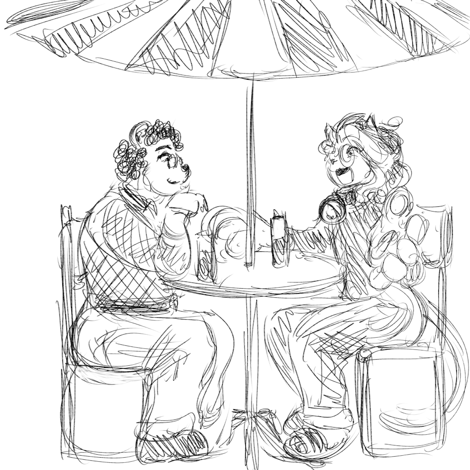 It's that time of the year again. No, not fall, the time when I lock HelmeetElGato up and make them draw for me for a whole day. Many things were made, many lewds were lewded, but I wanted to start with something cute It's nice to hang out with friends :)