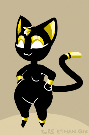 More experimentation with lineless art - making shapes and contrast do all the work instead of lineart, for once, is a good exercise. Also I like how black and gold go so well together.