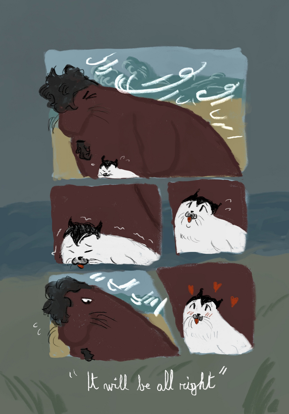 The storm may rage on but elephant seal Tenma will always be here to protect and comfort seal pup Atom ❤️