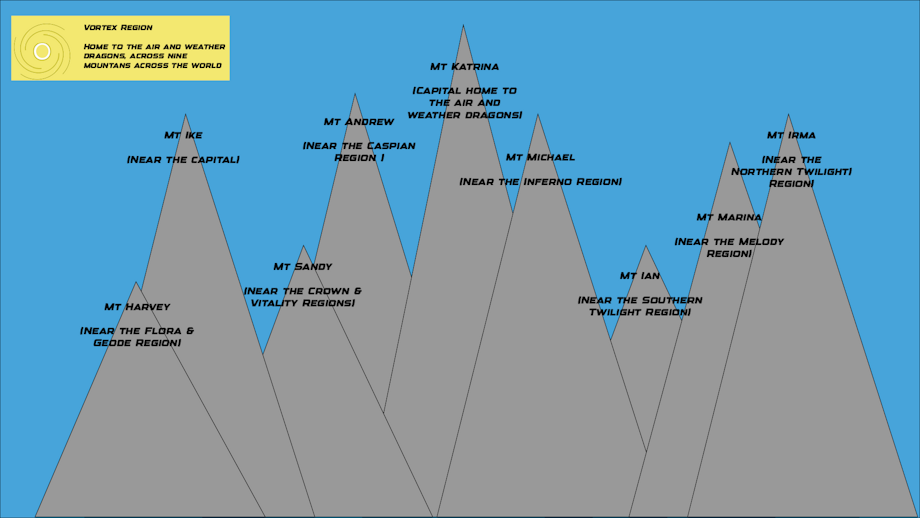 Not very well known for having large populations, its mountains and the cities atop them act as fortresses and bases for the planet's military airships, along with being trade and rest posts. The dragons here can act nomadic at times, helping others from other regions, and being very friendly to travelers.