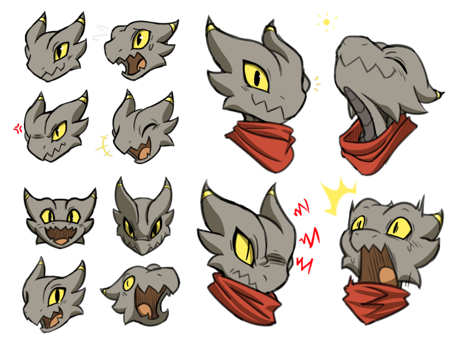 I made these emojis for my discord server a while ago and thought I'd share them for anyone else who would like to use them! They're based on Rakkuguy's art of his character Coal, which I just cleaned up and colored. The original art by rakkuguy.bsky.social can be found here! (and go follow him while you're at it!) He said I could post these :3