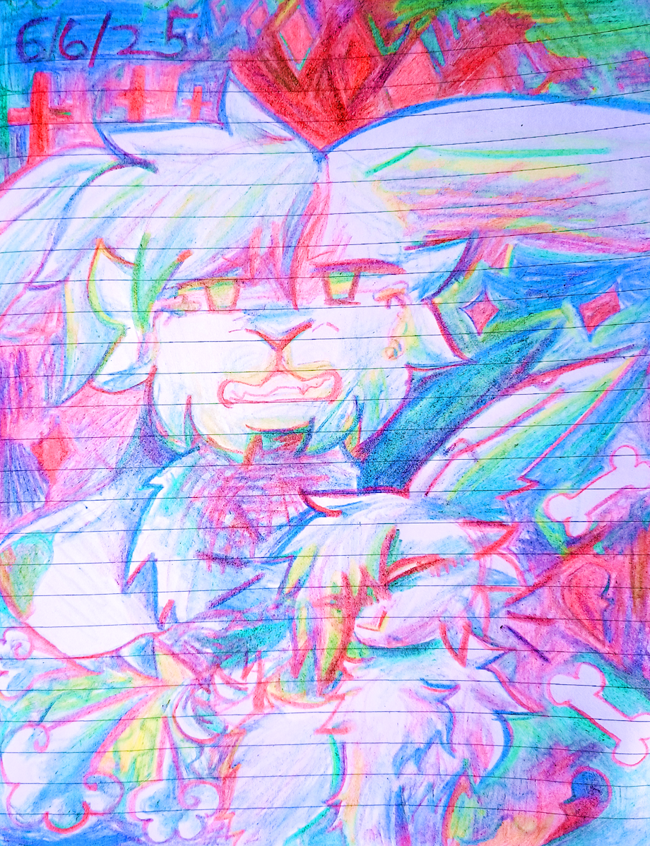 sketchpage with rainbow colored pencil made by my alter Red