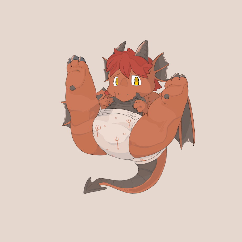 Look at this little lord of heck trying to show of his pamper butt this time, hope he doesn't make any accident while doing so, or else~