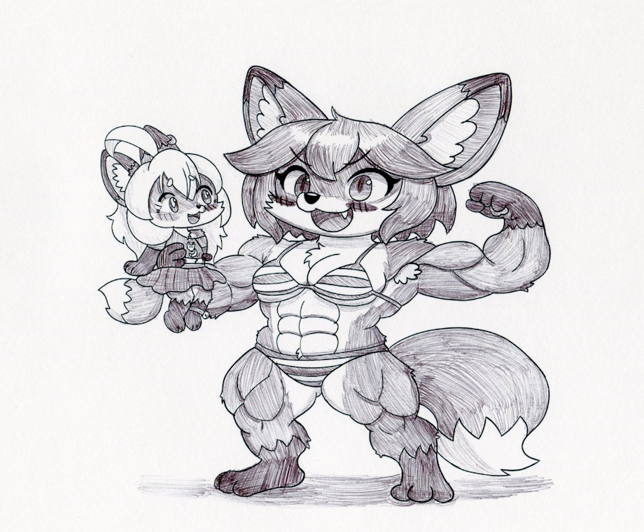Kitsu’s still our sweet chibi fox, just with enough power to carry everyone’s fluff now! Something new and random"ness". I usually dislike very bulk and muscular bodies, but hey something new xD