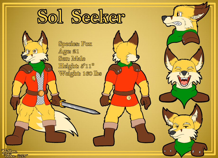 Whew! And that, uh… that’s about it for now. Personality-wise, well, it’s sufficient to say Sol is a generally kind and loving fox, but has somewhat of a timid nature. He doesn’t actually care for fighting that much, overall he just wants peace and for everyone to be happy, but he knows he has to fight sometimes to make things right. He can be a bit emotional at times, but tries, once more, to control himself to maintain a good balance. He also, funny enough, can sometimes can have a bit of ‘tude, as that bottom right drawing eludes to x3