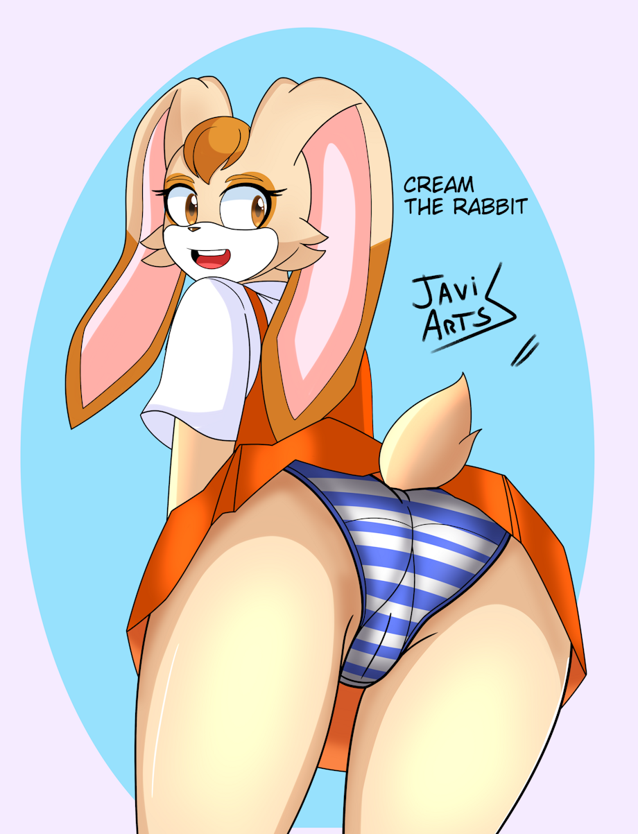 My Goodness. Cream is really showing off her panties like a real bold lady. I wonder where she learned the ways. Unless she's just clueless about her bunny tail holding up her skirt.