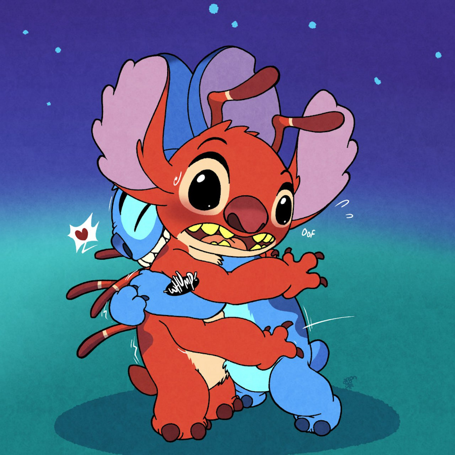 More Lilo and Stitch fanart. My story behind this is one of the many Leroy clones’ was showing habits of not being as much of a monster as the other clones and of course the original Leroy so he was sent off to Lilo’s house and was confronted by Stitch who gave him a big hug much to his confusion.