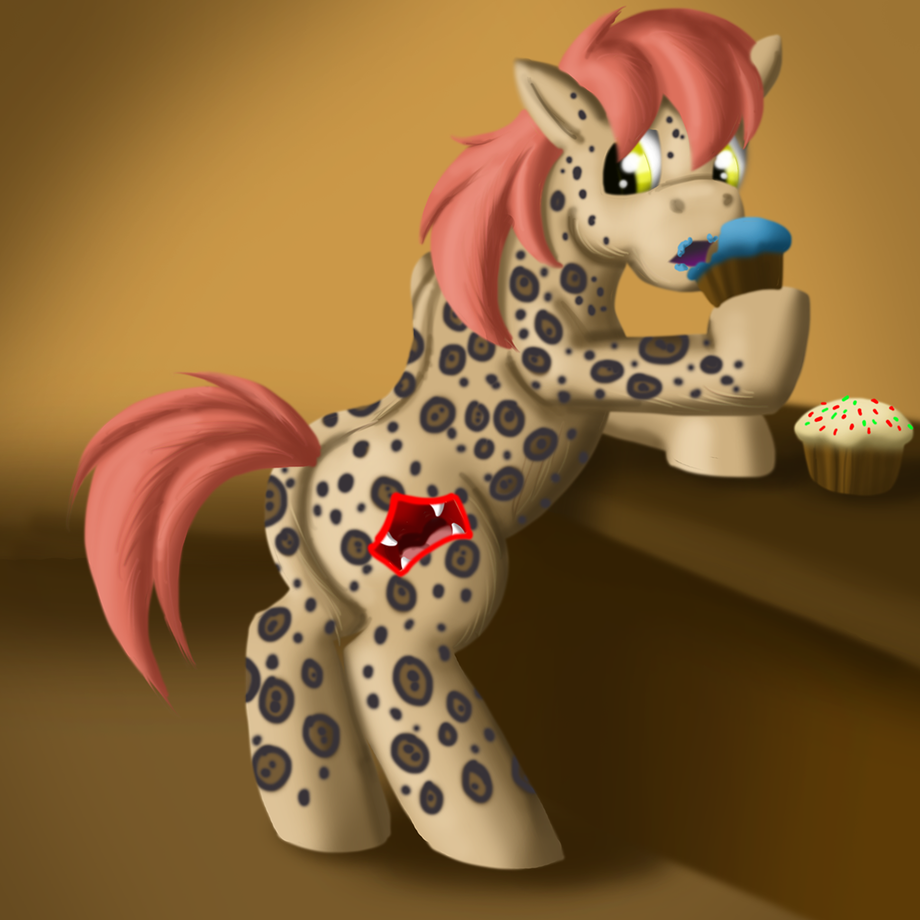 of his pony character eating sum cupcakes....are there ponies in those cupcakes?