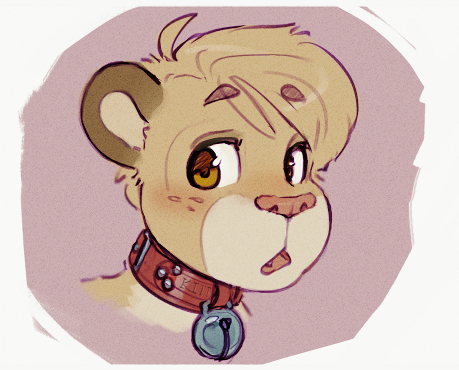 Is this the same lion boy you drew playing with his dad? Those are some of my favorite pics of yours. I wonder if the “Kitten” collar was a gift from his dad or his auntie? ☺️