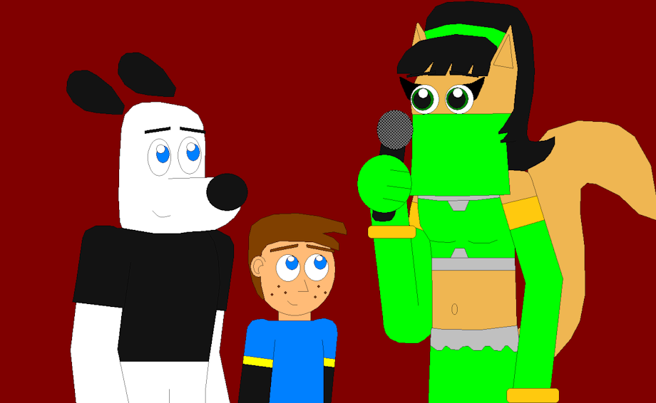 Anyway, in this picture, Kiara's guests happen to be Dudley and Andy, who, in her civilian life as Kitty Katswell, are her husband and son. I know that TUFFAgentShepherd isn't a Kudley shipper, and he'd rather have his own character, John, be paired with Kitty, but I figured he can just look at Dudley just being a guest on the show. Now in my series, Dudley and Andy do know Kiara's secret identity, but they can keep a secret. But I bet it's going to be hard for them to remember not to mention they're family on TV. So Kiara can't say "It's my husband and son", and Dudley and Andy can't call her "Kitty" and "Mom" respectively either. I guess it's not every day you're hosting a game show and some family members happen to appear as guests.