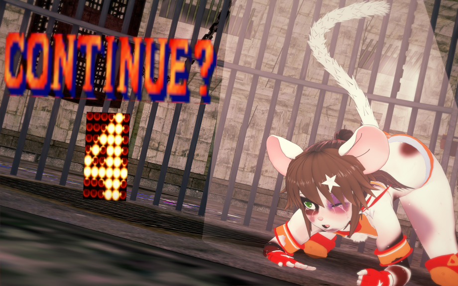 The match didn’t go her way this time… The screen flashes — “CONTINUE?” — counting down one by one. Her body heaves with every ragged breath, battered but not broken. You can almost feel that stubborn spark — the will to rise again before the timer hits zero.