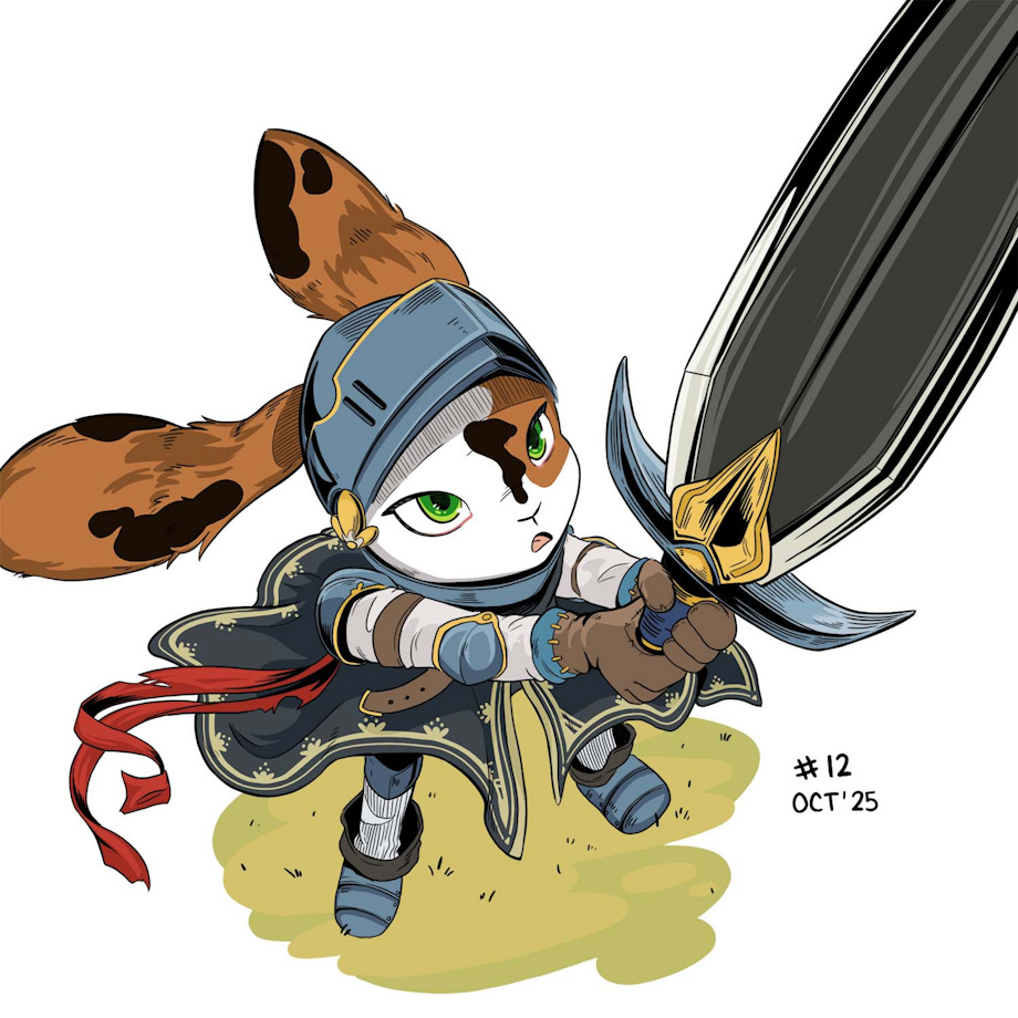 Ooh, it's great to see Holly in full paladin mode! She looks very cool here, and that's a heck of a sword! She might be a little bun, but she's a big hero and you've done an amazing job with this! I love the detail on her armor and cloak and the fierce expressiono on her face is beautifully done!