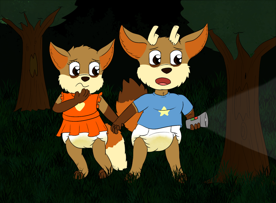 Wylie & Riley walking through the dark haunted woods as they try to find a way out.