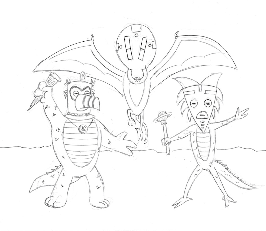 So, for "Ancients," I decided to bring back some classic characters from Archie Sonic, the Ancient Walkers, a mysterious trinity of dino-mobian shaman/sorcerers who ascended to god-like status over time. They served as a kind of friendly Deus Ex Machina entites in Archie Sonic until their ultimate demise in Archie Sonic #162.