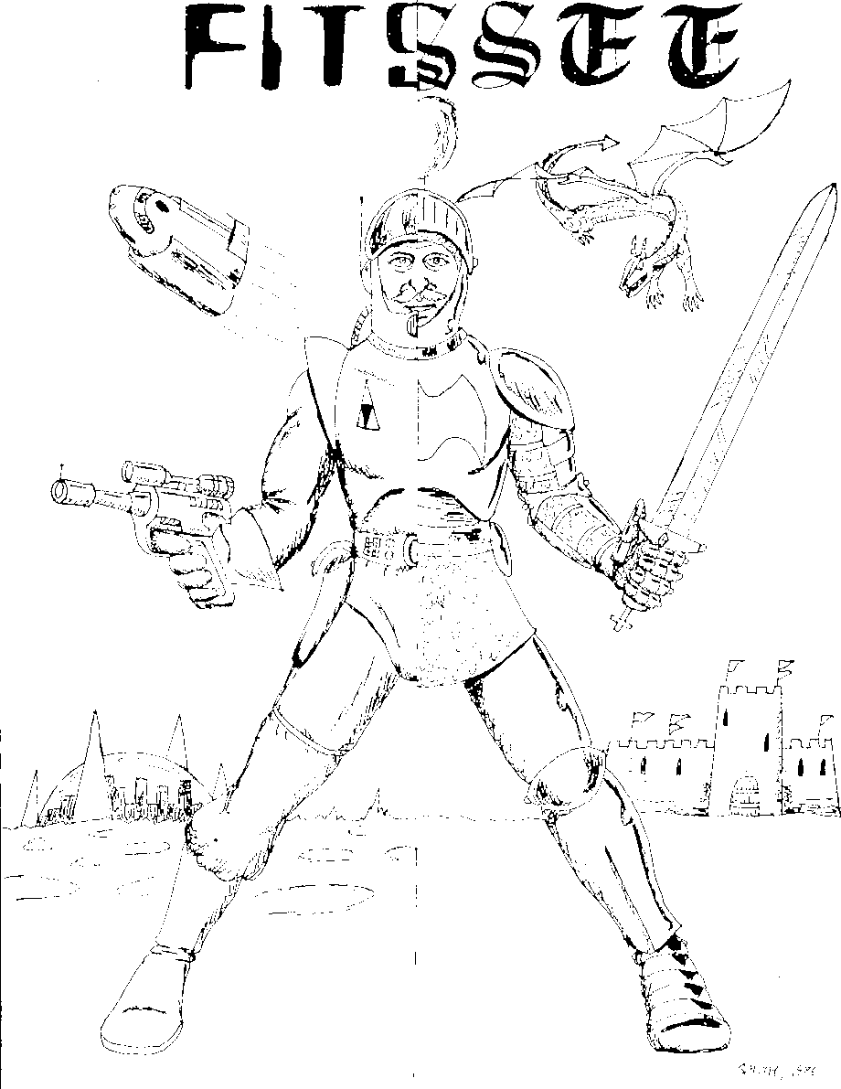 This is the first picture I drew on commission. It was done for the Florida Institute of Technology Society for Science Fiction and Fantasy, or FITSSFF. I was a student at FIT (now called Florida Tech) at the time, and a member of FITSSFF, and they wanted a design to put on their T-shirts, so I drew this for them. They liked it enough that they went ahead and used it, which made me very happy. I still have my T-shirt.