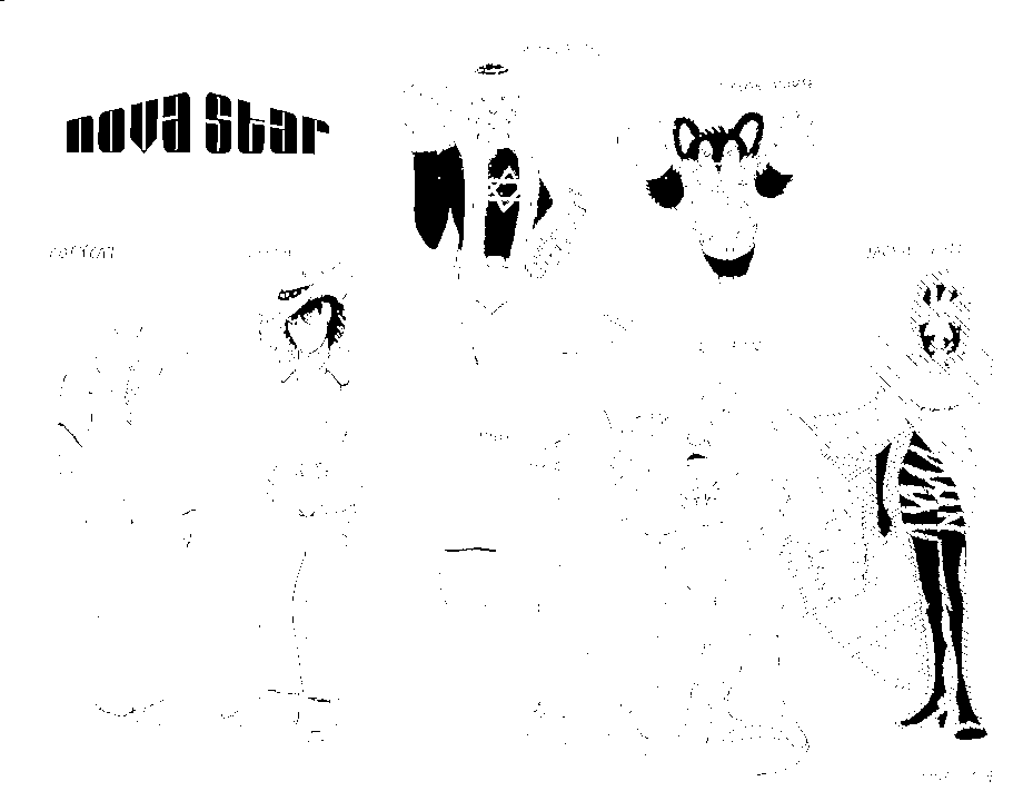This is a group portrait I did for a superhero game I was in called Mutants and Masterminds. Our team was called Nova Star, and included Copycat (a shapeshifter), Leech (a power drainer), Kabbalah (a Jewish sorcerer who cast spells from the Torah), Gridiron (a former football star with a suit of powered armor), Jackie Shade (mysterious mistress of darkness), and my old buddy from my Champions game, Omega Mouse (a furry flying powerhouse from another dimension). Nova Star didn't have a rich sponsor, so we operated on a low budget, Omega Mouse having to carry the team to battles in the Novamobile (an ordinary minivan). The funniest moment in the campaign was when we told Kabbalah we were going to the mall (which had been taken over by terrorists), and he asked: "Why, is there a sale?"