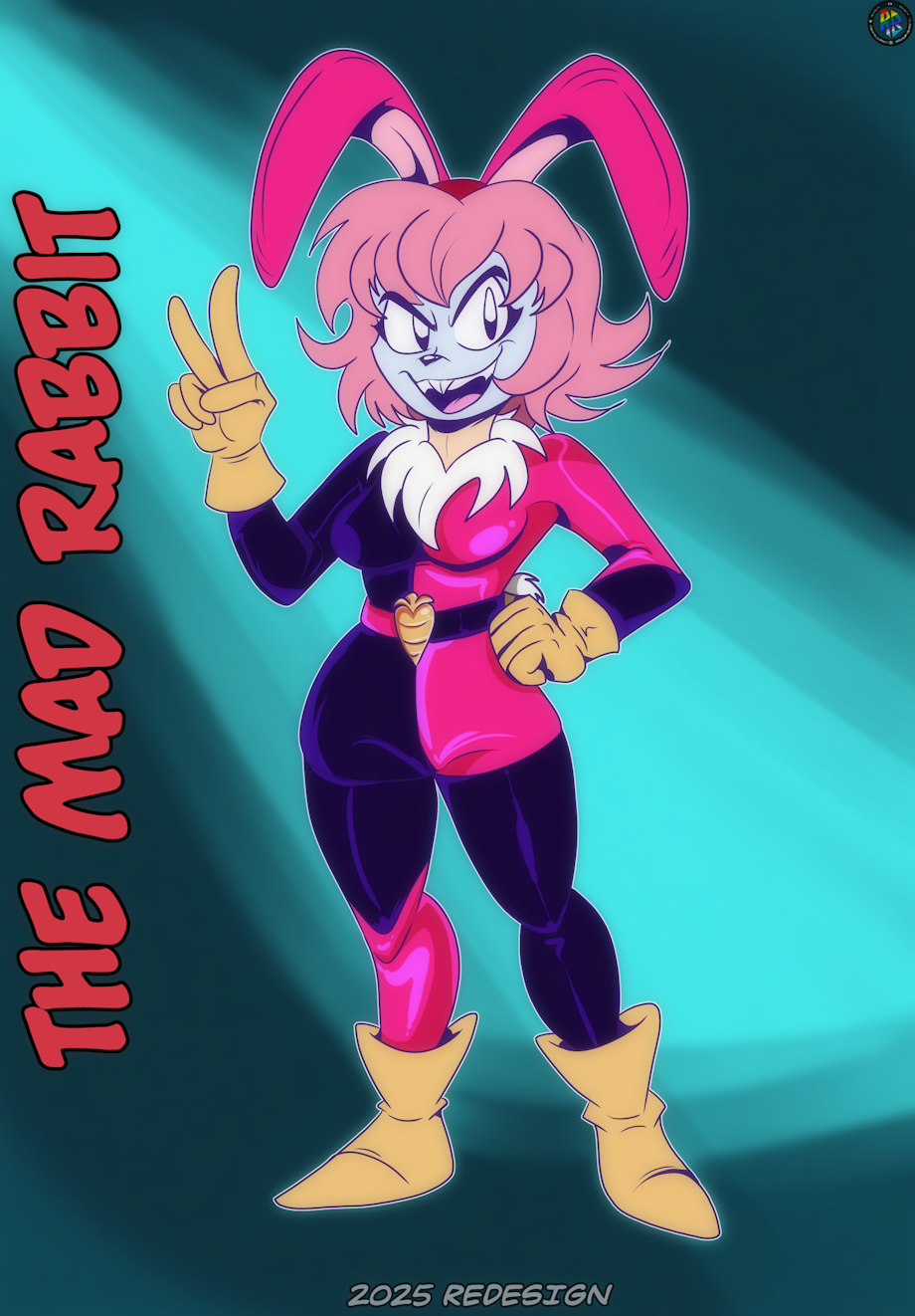 New 2025 Redesigns of my villain OC - The Mad Rabbit (The Spectre: POM) --- After being rescued by the mysterious new vigilante Spectre (James Jordon), Alice Lewis Dodgson can’t shake the image of the masked hero who saved her. Fascinated—no, enchanted—by his courage and theatrical flair, Alice becomes fixated on meeting him again. But how do you get a superhero’s attention? By becoming his perfect opposite.