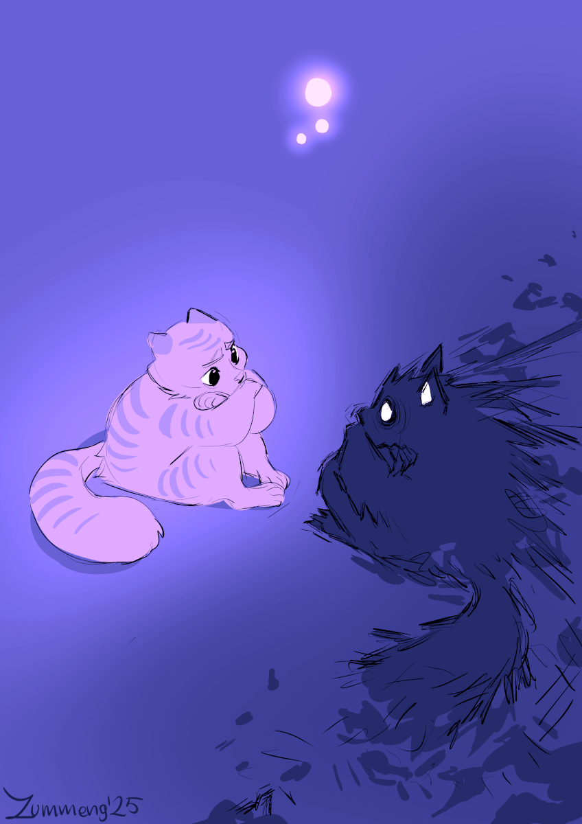 I rarely do vent art, but there was a day when I felt like I just had to quickly put one together. When I made this, I didn't have my sona yet, but the emotions in this picture are still valid. For me, this symbolises that it's a pretty awful feeling when we have to face our bad side, but at some point it's inevitable; it's part of life.