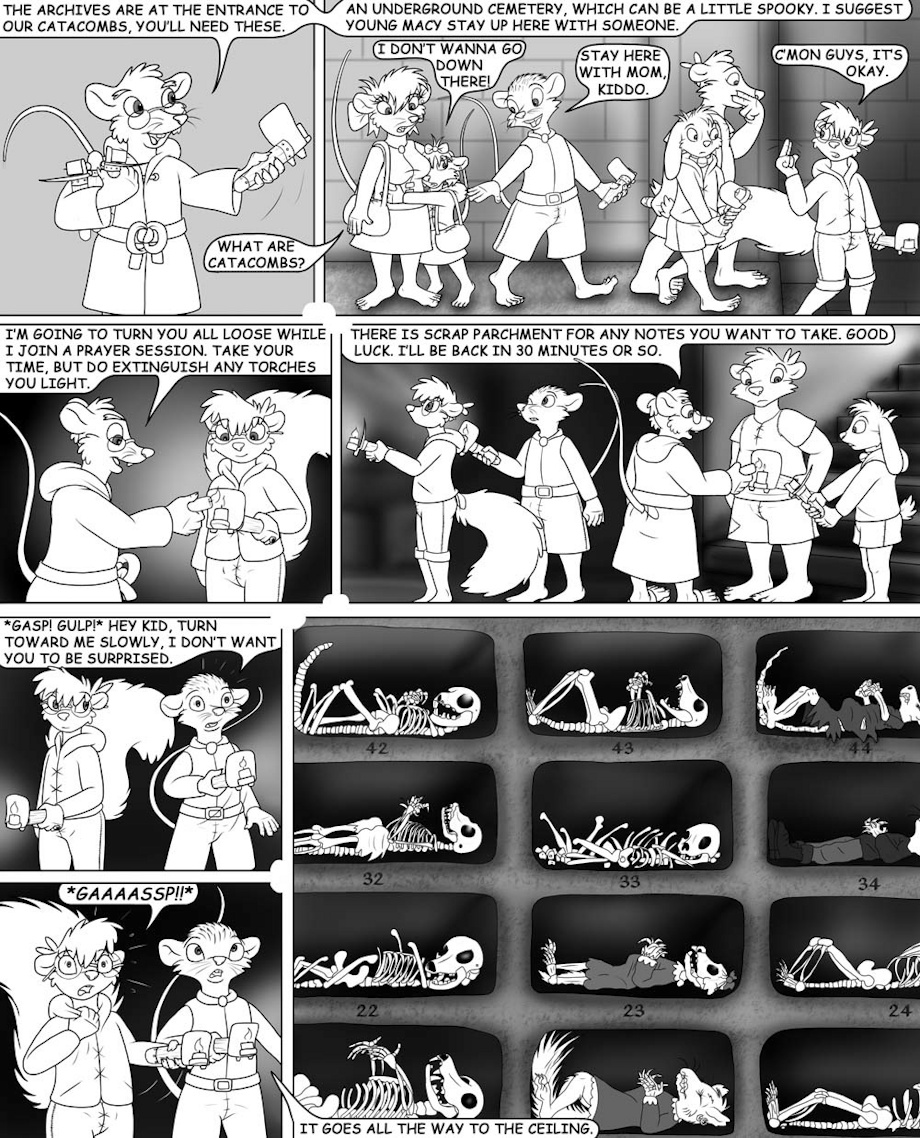 The archives....I am very much looking forward to the next page.  I can imagine Chucky asking some very careful, but pointed questions, like, "Are skunks considered good beasts or vermin?  And why?"