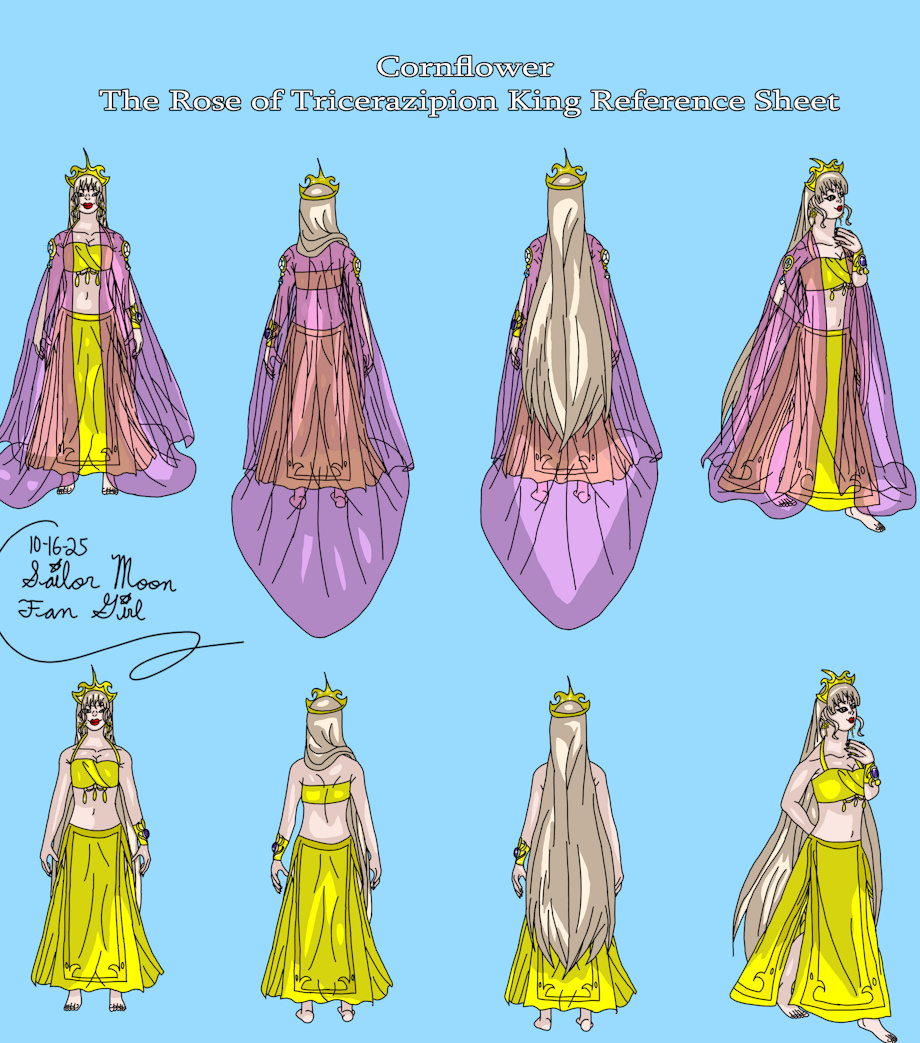 This is my reference sheet to my oc character Cornflower from my future story The Rose of Tricerazipion King that will come in the future someday. :)