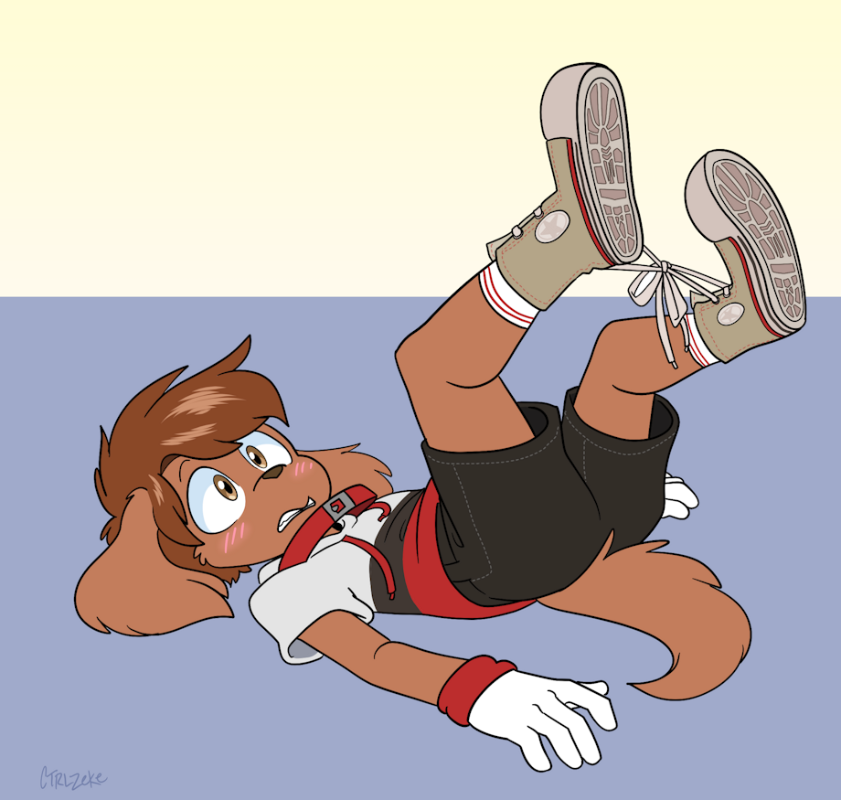 Tyler not knowing how his sneakers ended up tied up without knowing while minding his own business.